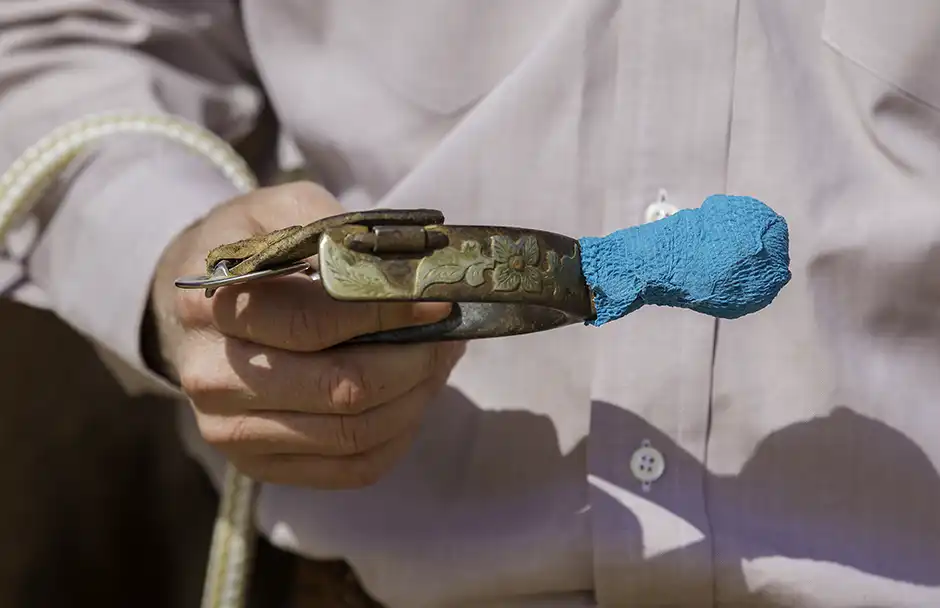 1. It’s smart to introduce spurs to your horse on the ground before strapping a pair on your boots and climbing up into the saddle. You can never be sure how a horse is going to react to spurs the first time he feels them, even if he’s on the cold-blooded side of the scale. Letting the horse get used to the feel of the spurs while you’re on the ground keeps both of you in a safe position.