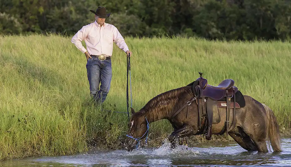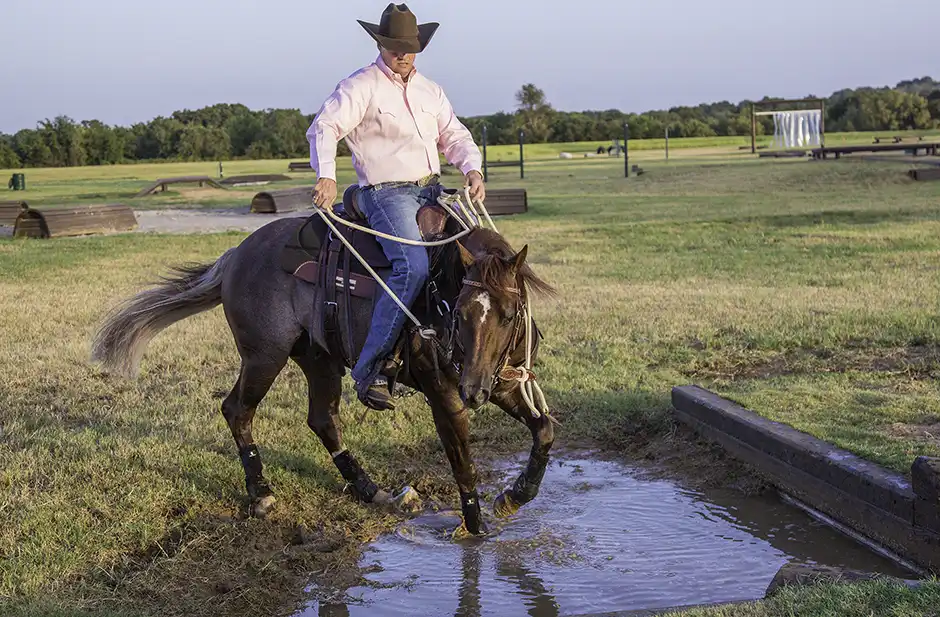 A great trail horse has no problem walking confidently through water—no matter how small or large the body of water is.