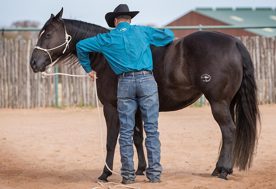 Keep in mind that you may have to chip away at the issue a little each day if he is especially worried. For example, if the horse doesn’t like you touching his flank, you’ll first establish a starting point—an area where he is comfortable with you touching. In this example, that might be on his back. Once you’ve established a starting point, then you can use the Approach and Retreat Method to gradually work your hand down his side to his flank. But you don’t want to go straight from his back to his flank; you first have to build his confidence and trust. Maybe in the first session you’ll only make it halfway down the horse’s side before he becomes uncomfortable and resists you. That’s OK. As long as you’re making progress and increasing the horse’s comfort level, you’re doing your job. It may be the third or fourth session before you can rub his flank while he stands still and relaxes. That’s perfectly fine.