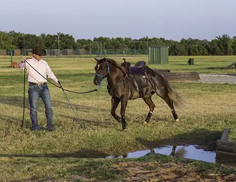 But let’s get something straight, if your horse kicks you, he’s going to do a whole lot of damage that could put you in the hospital or much worse. Disrespectful behavior like kicking is nothing to mess around with. But again, if you just do the Fundamentals with your horse and earn his respect and prove to him that you’re a trustworthy leader he doesn’t need to fear, 95 percent of any sort of behavioral problem will fix itself.